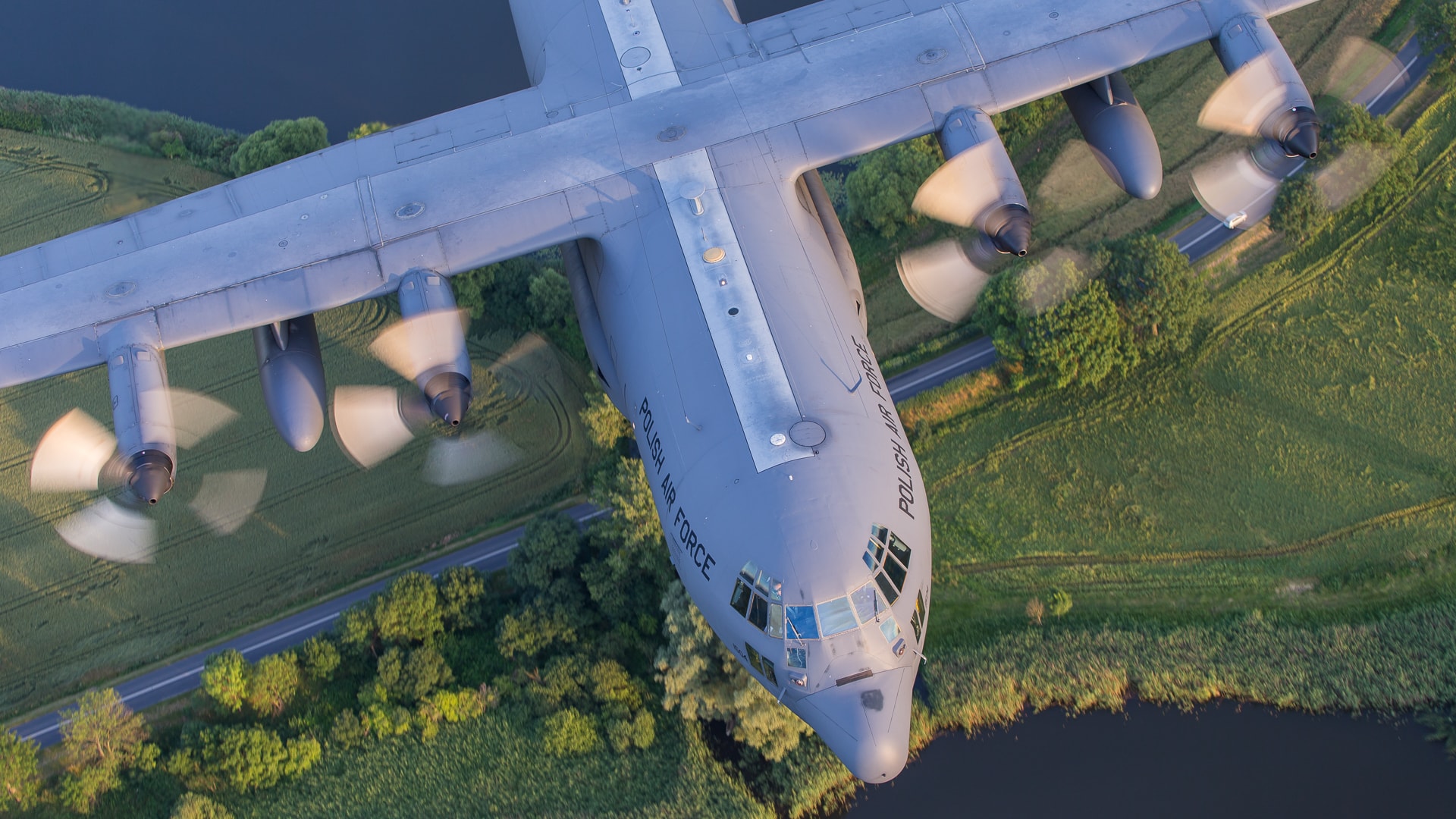 Lockheed C-130 Hercules of Polish Air Force during a local training flight out of Powidz Air Base, Poland