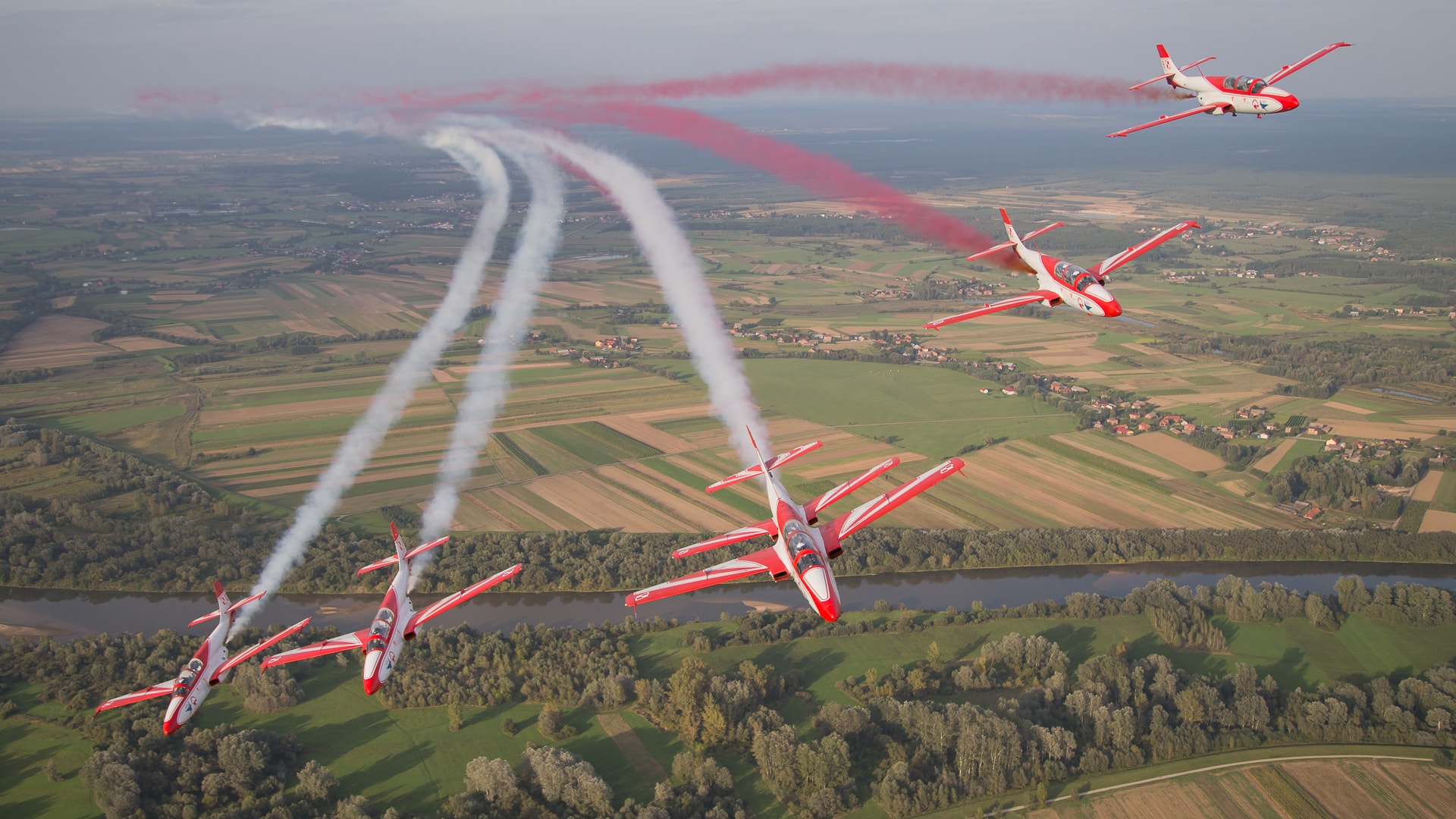 White-Red Sparks Aerobatic Team flying 6x TS-11 Iskra aircraft. The team and TS-11 aircraft were retired in 2025.