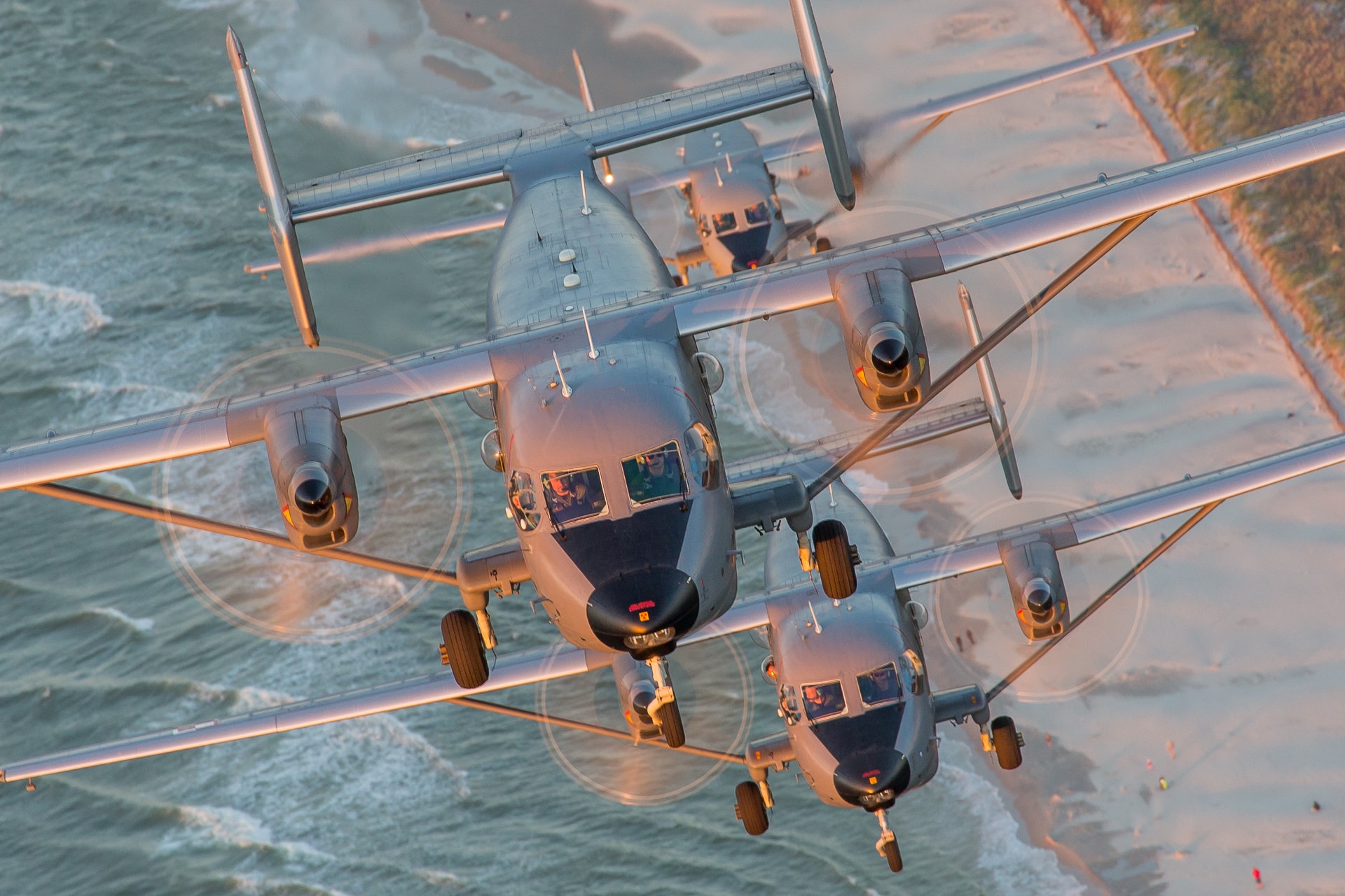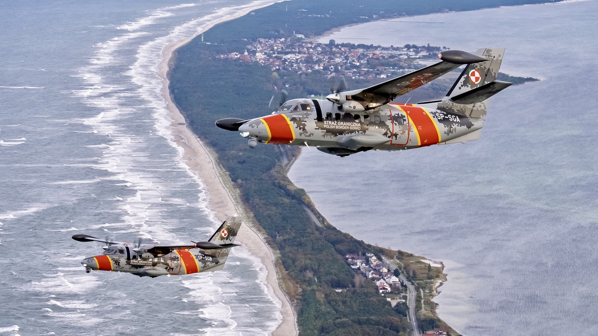 2x Turbolet L410 aircraft of Polish Border Guard during a training flight above Hel Penninsula in Poland
