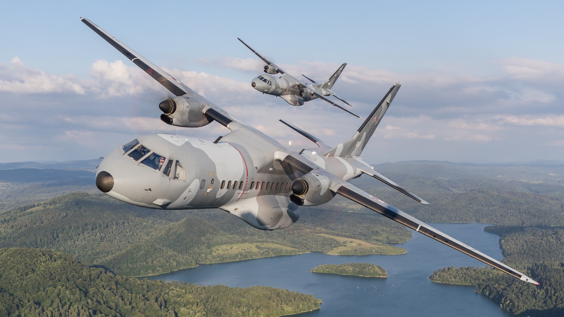 2x Casa C-295M of Polish Air Force during a training flight over Bieszczady Mountains in Poland