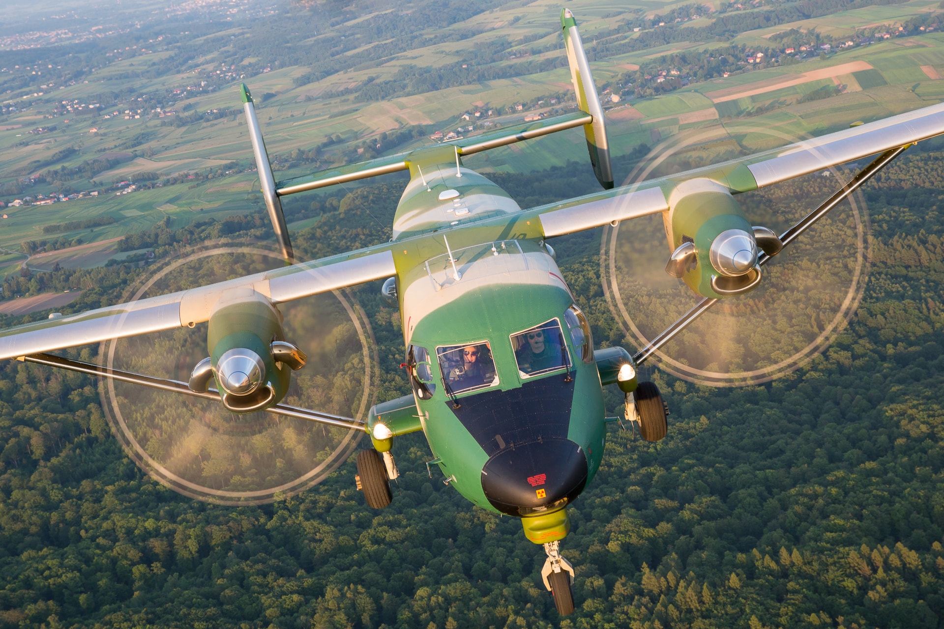 PZL M28 SKytruck during an afternoon training flight in Bieszczady Mountains, Poland