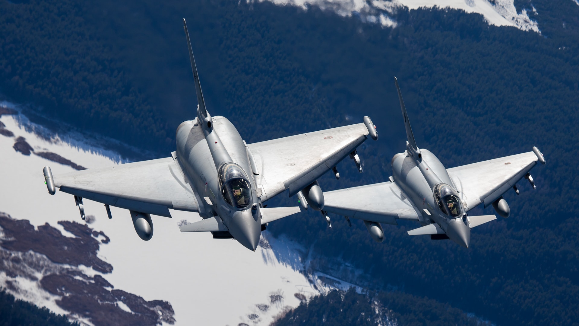 2x Eurofighter Typhoon of Italian Air Force during NATO Baltic Air Policing mission in Lithuania