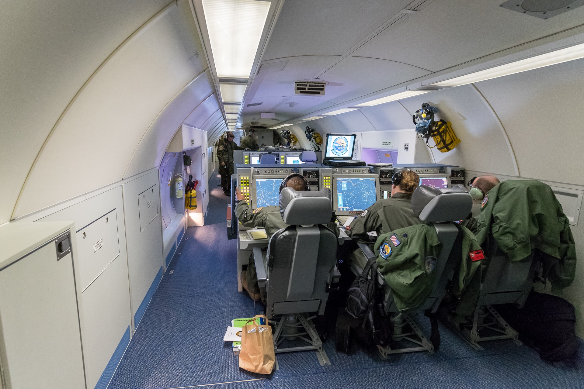 Interior of E-3A AWACS aircraft during a training mission above NATO airspace