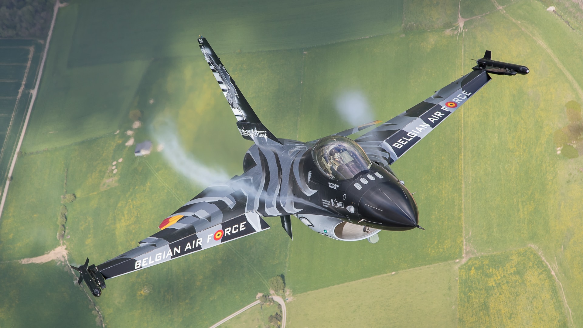 F-16 Dark Falcon - a demonstrator aircraft of Belgian Air Force during training flight over Belgium