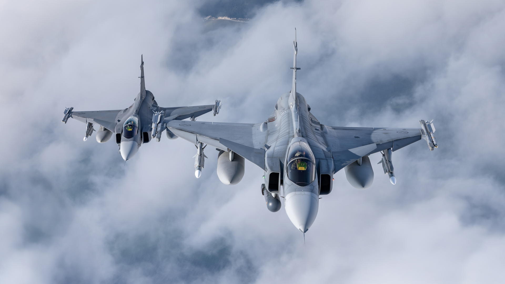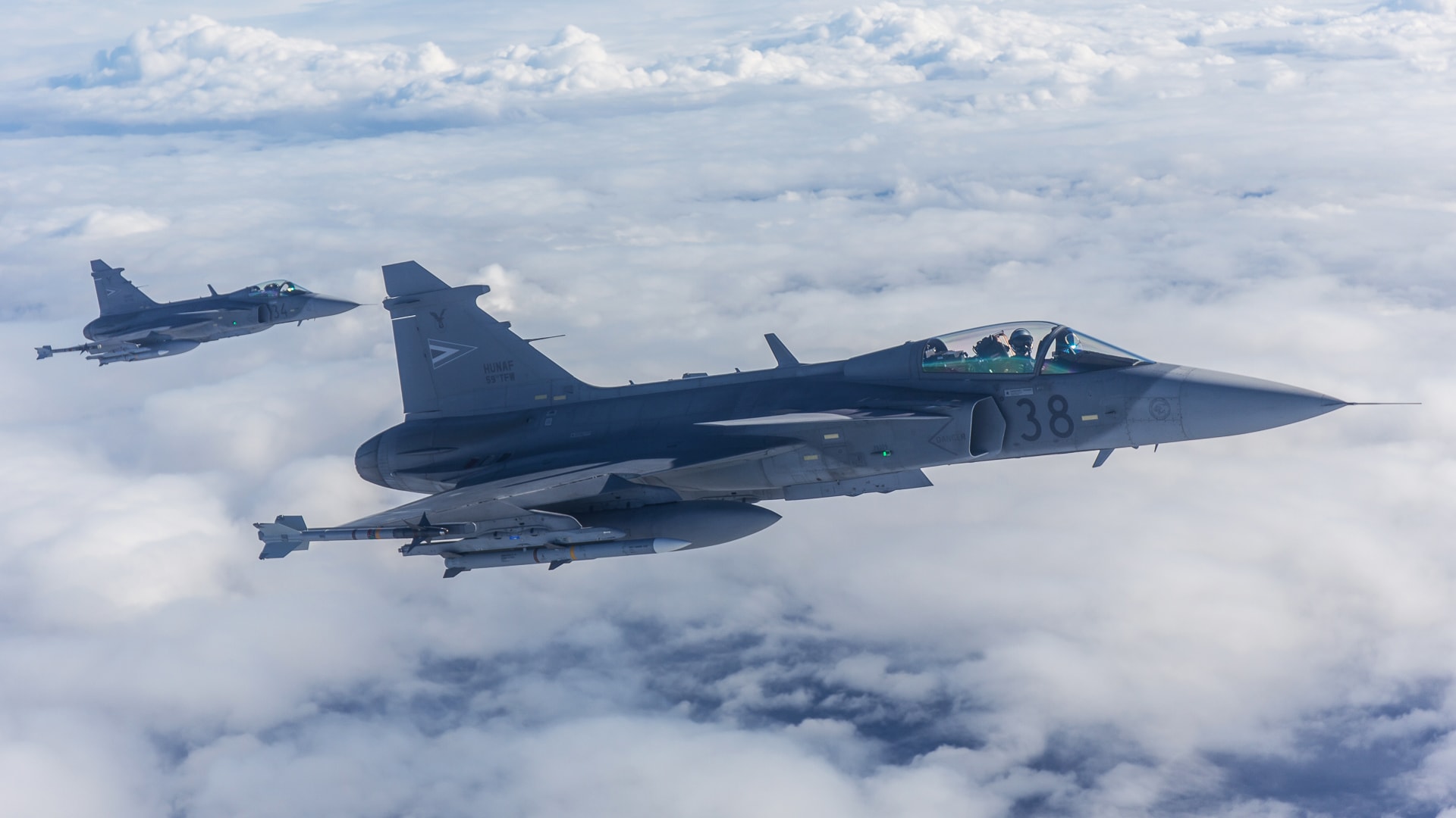 2x JAS-39 Gripen of Hungarian Air Force during a training flight as part of Baltic Air Policing mission in Lithuania