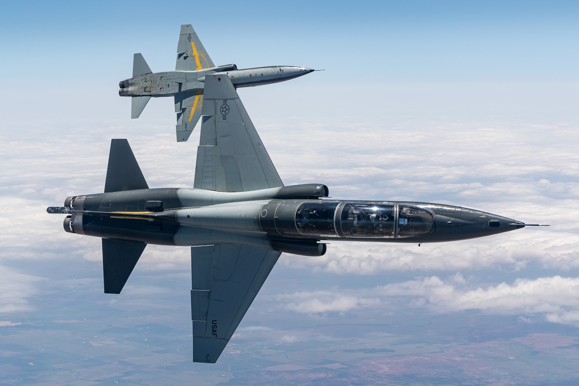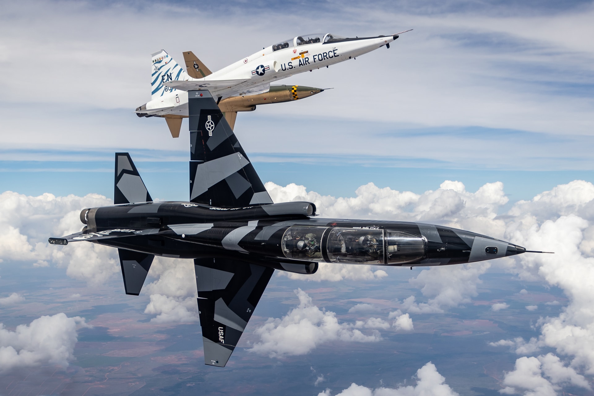 2x T-38 Talon of US Air Force from Sheppard Air Force Base during a joint training flight above Texas