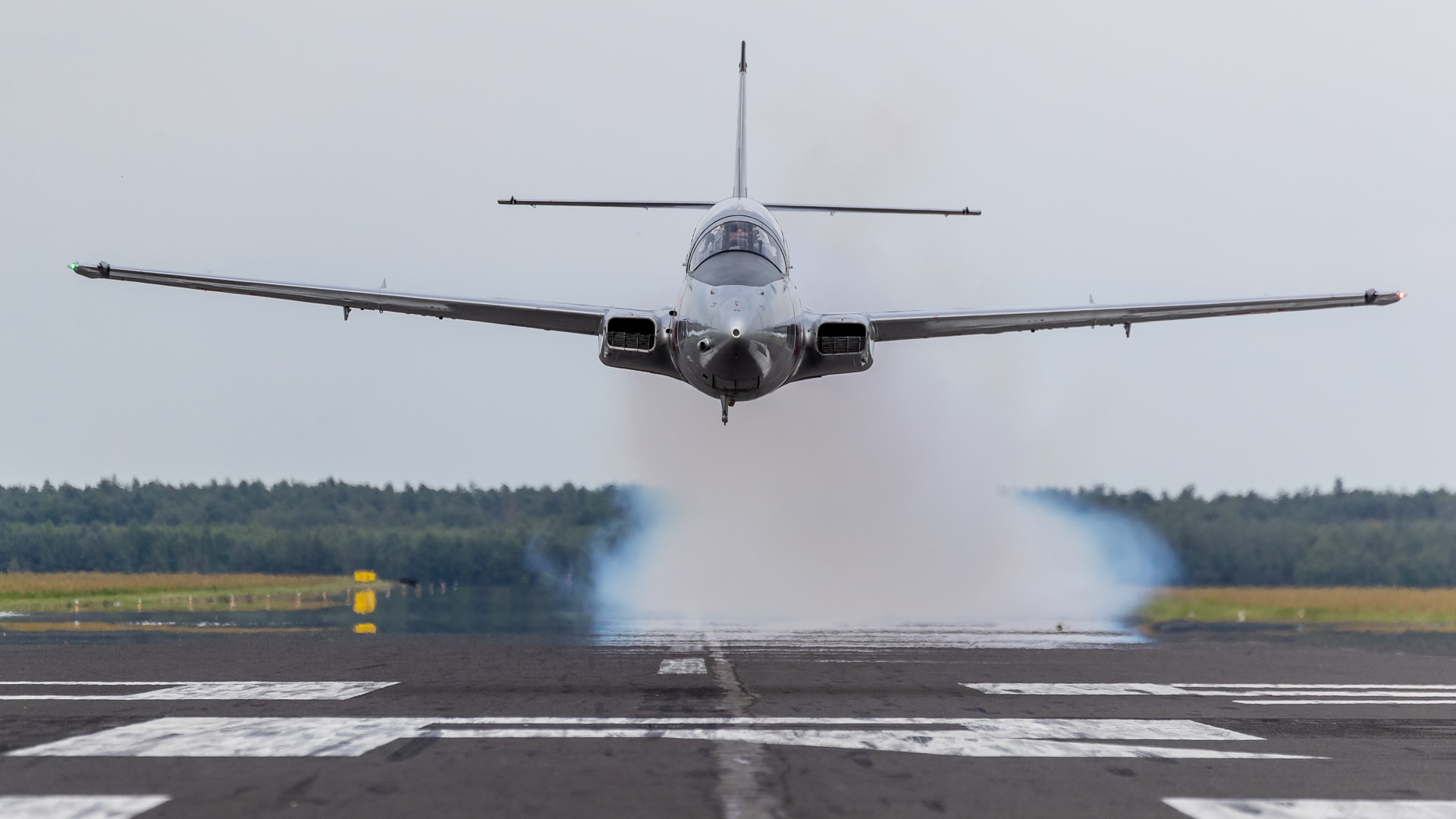 TS-11 Spark of Polish Air Force during a low-pass over the runway of Mielec Airport