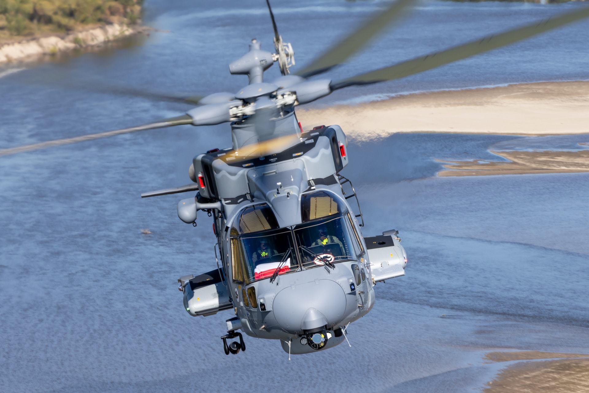 AW-101 helicopter of Polish Navy flying alongside Vistula River. This aircraft is based in Darlowo Airbase, close to Baltic Sea.