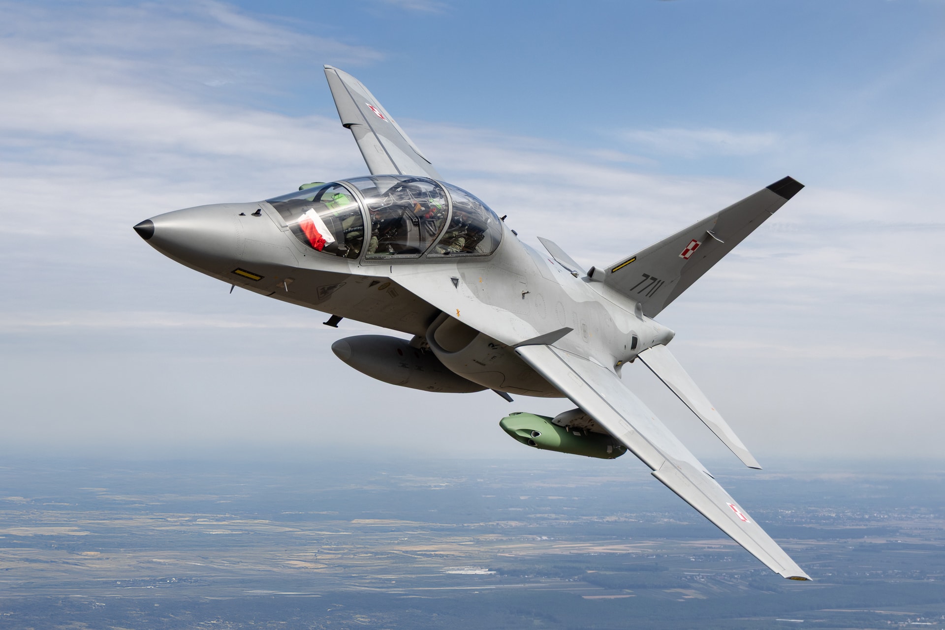 M-346 Bielik of Polish Air Force presents Polish flag in the cockpit during a training sortie operating out of Deblin Air Force Base, Poland