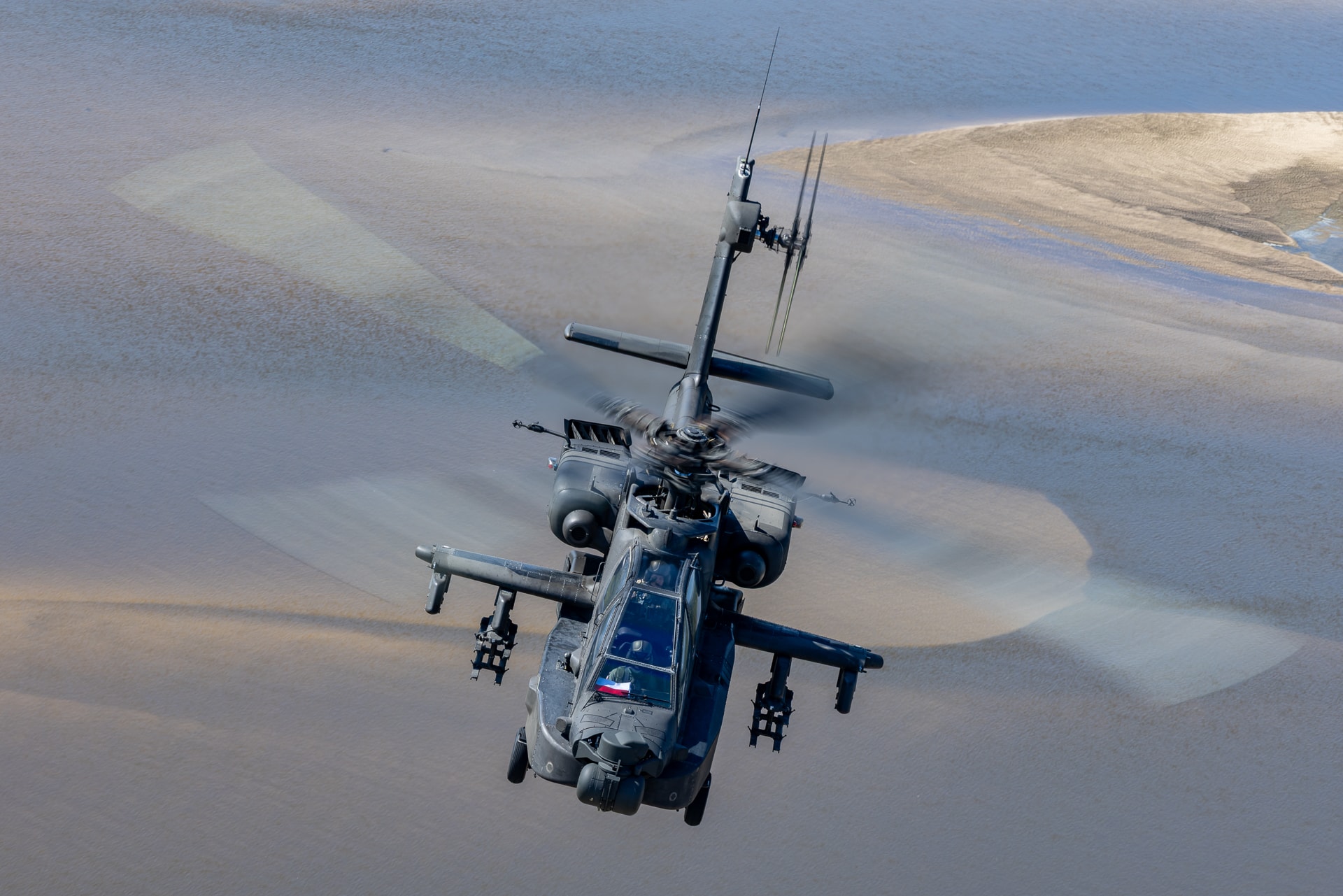 AH-64 Apache helicopter of Polish Air Force during a low-level training sortie above Vistula River, Poland