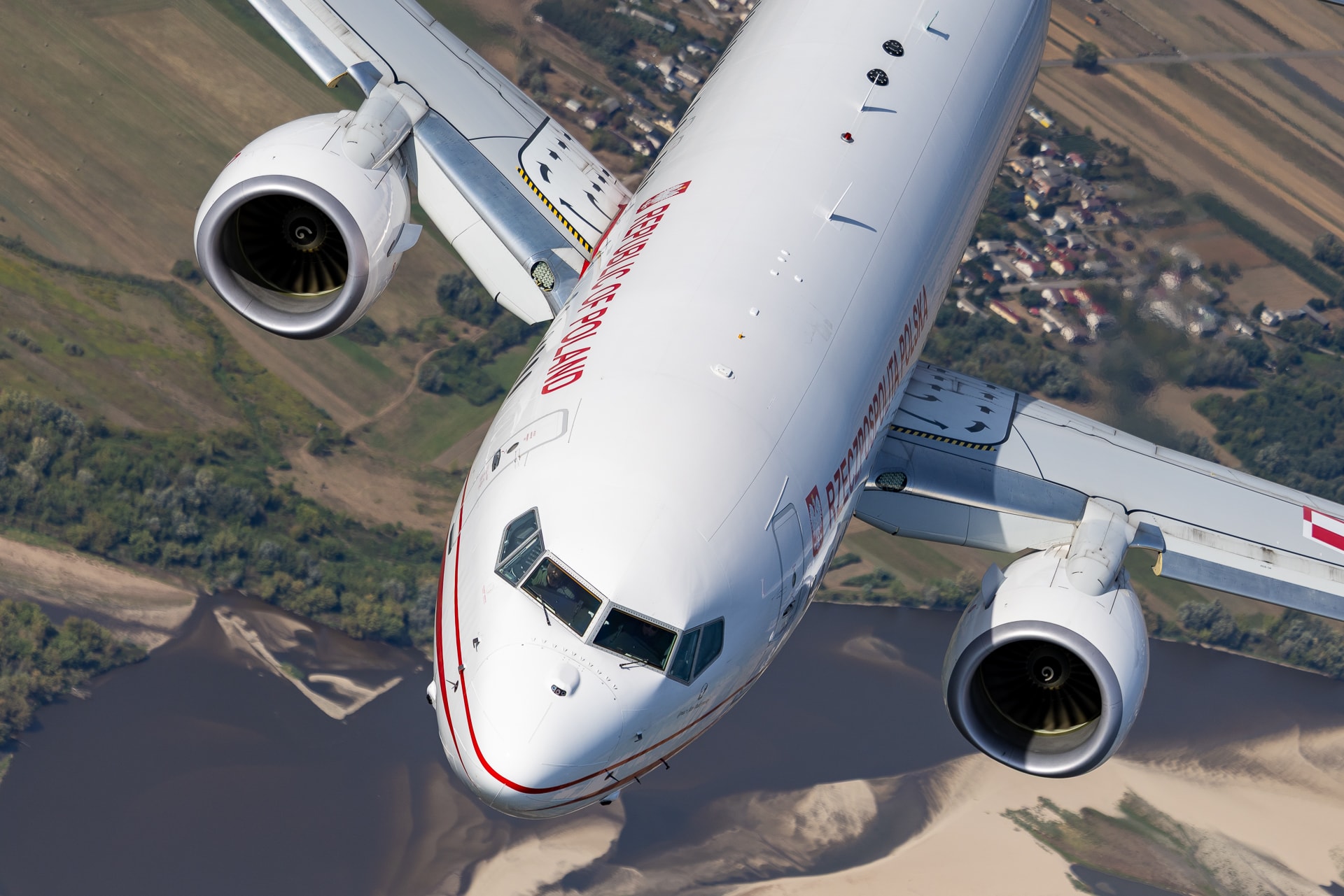 Close up view of Boeing 737 of Polish Air Force during a training flight before entering the service for VIP transport