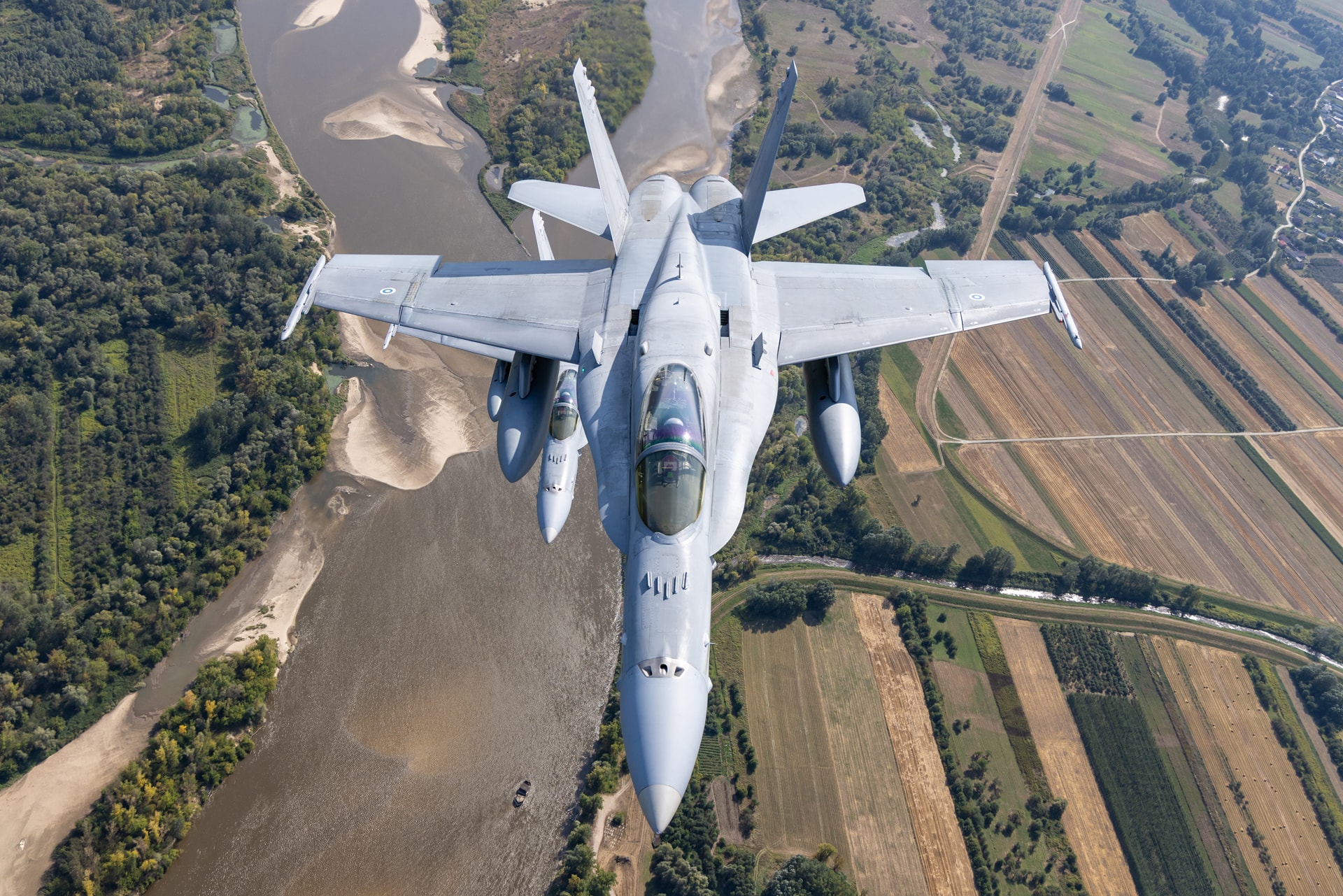 2x F/A-18 of Finnish Air Force captured over Poland before arriving to Radom Air Show event