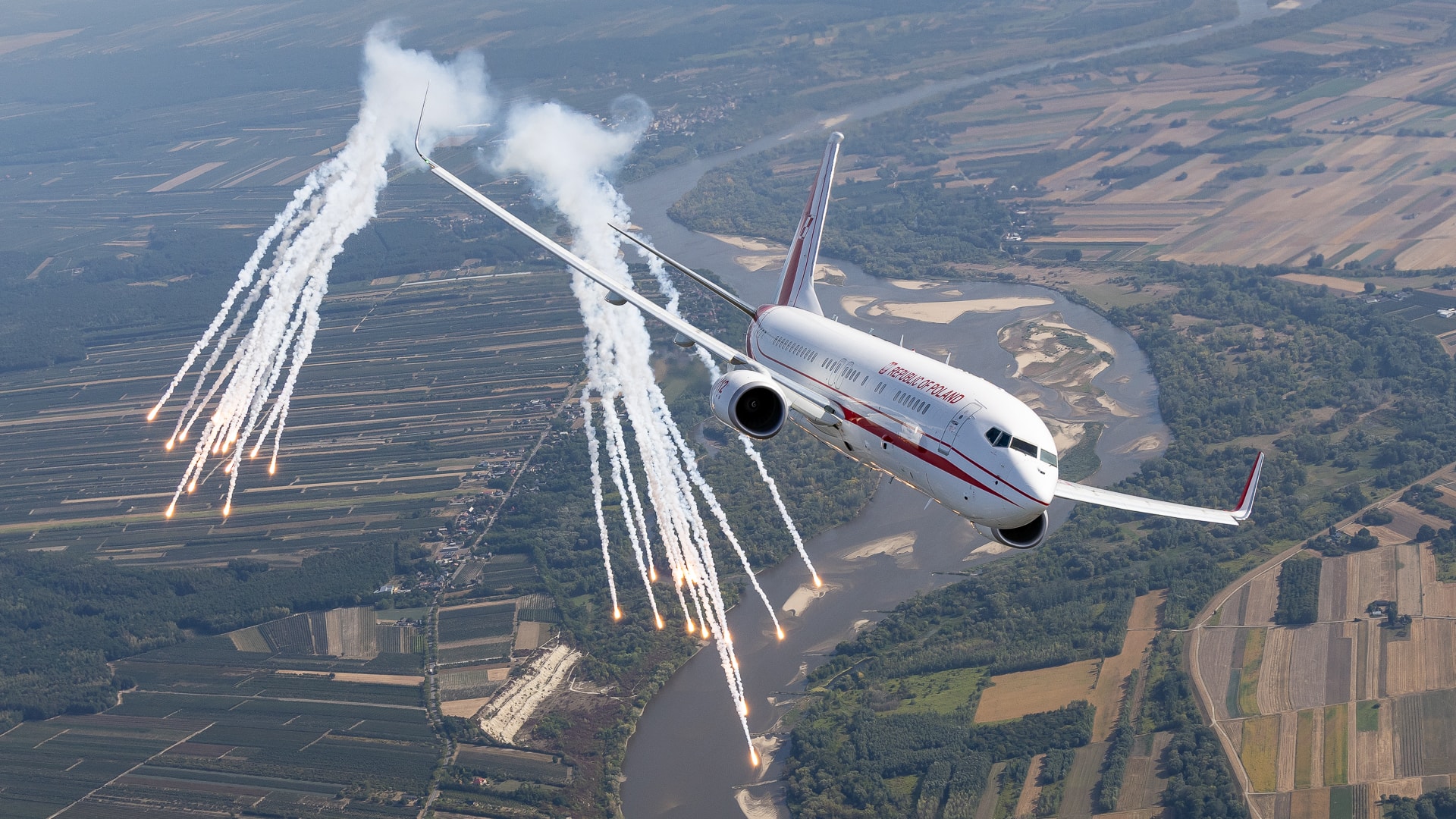 Boeing 737 from 1st Airlift Base releasing flares during a training sortie over Poland