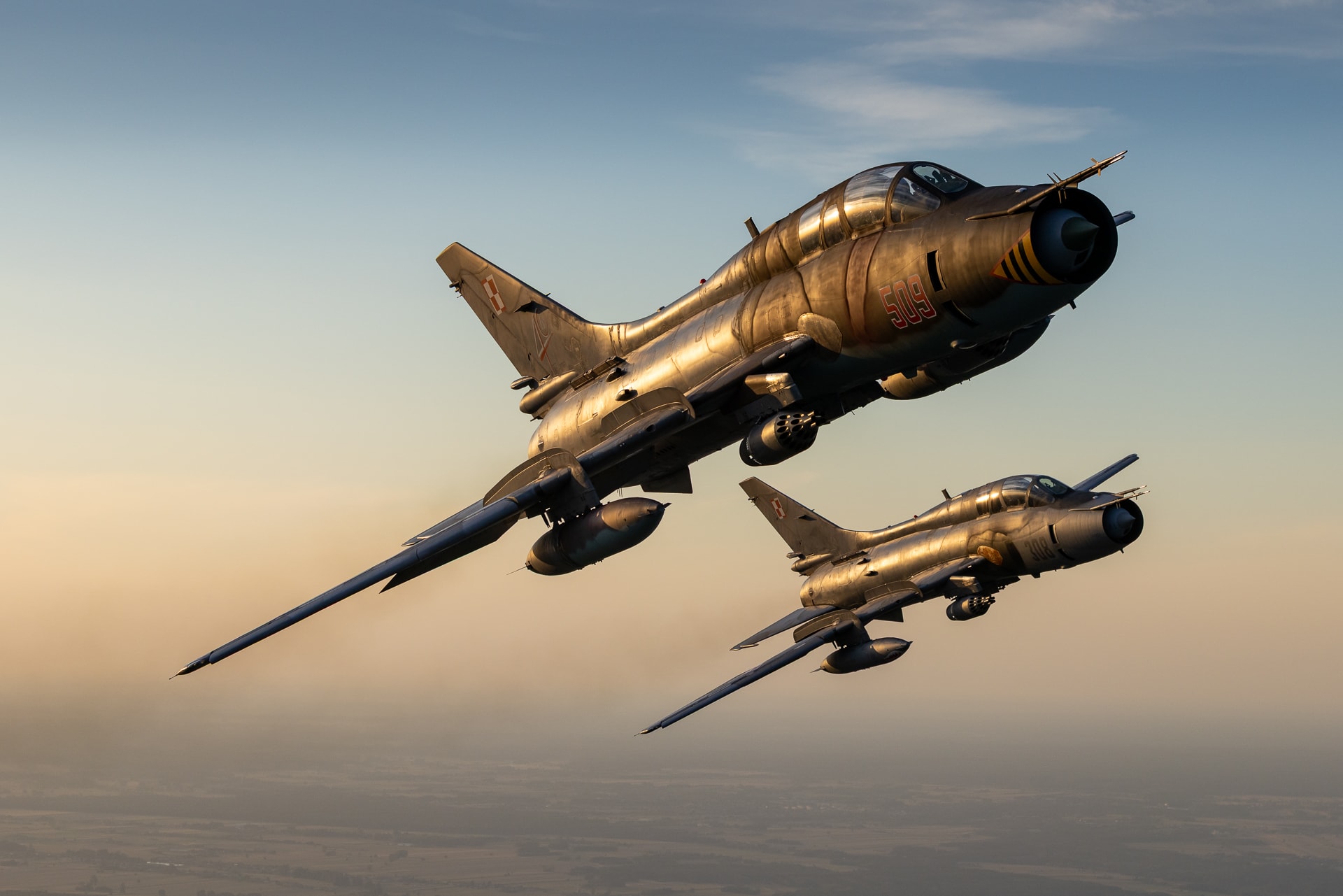 2x Su-22 of Polish Air Force during a farewell flight shortly before being withdrawn from the service in 2025