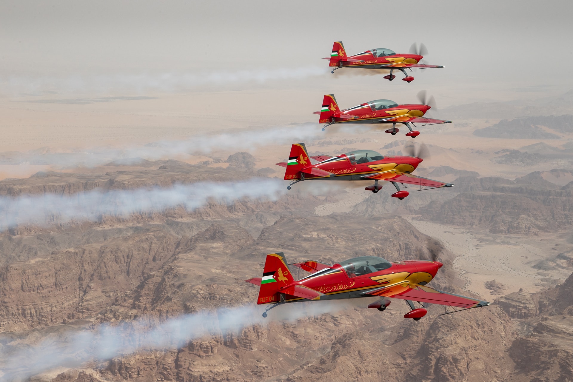4x Extra 300 of Royal Jordanian Falcons during a formation flight above Jordan
